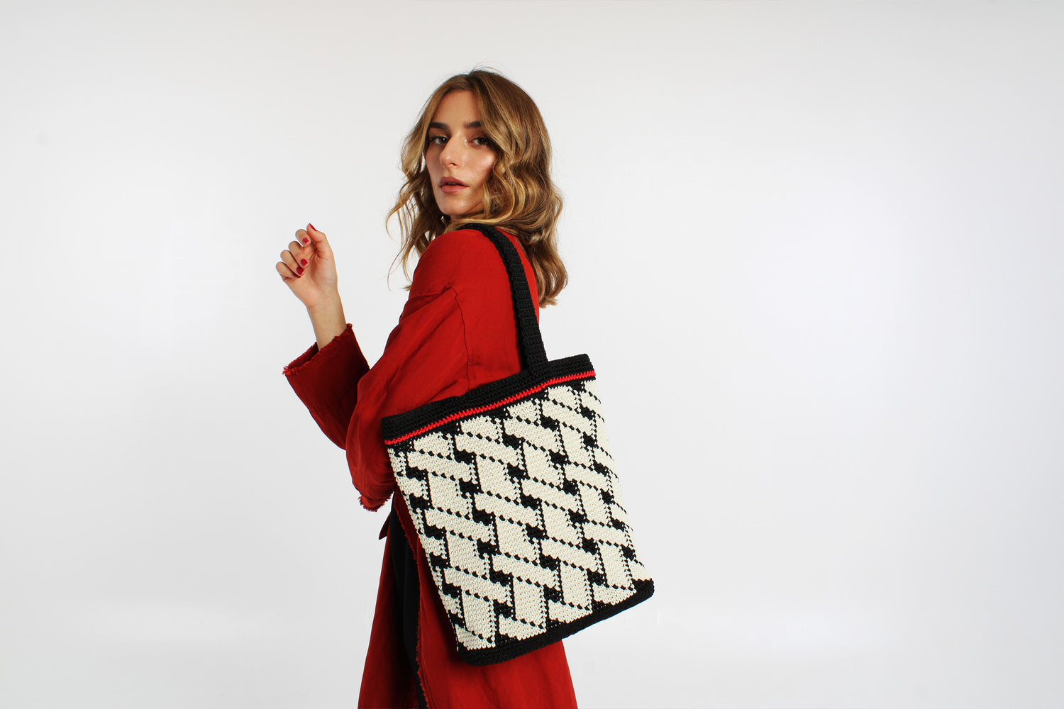 Polypropylene yarn with knitted handles.