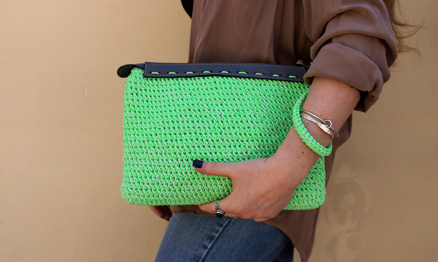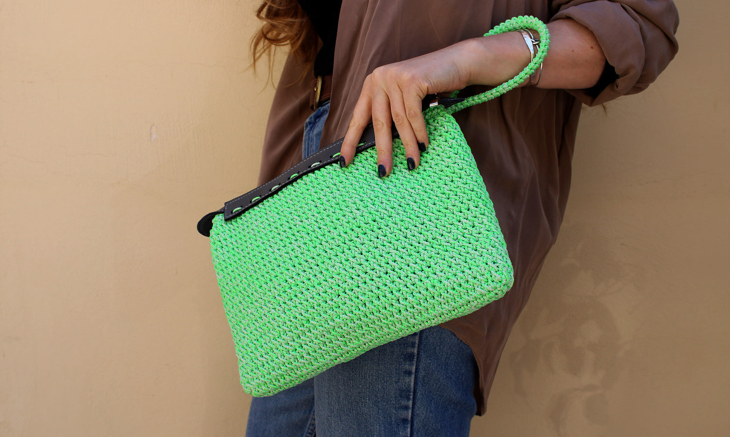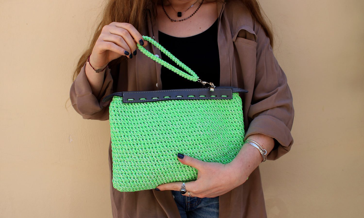 Νήμα πολυπροπυλένιο, με φερμουάρ και δερματίνη.